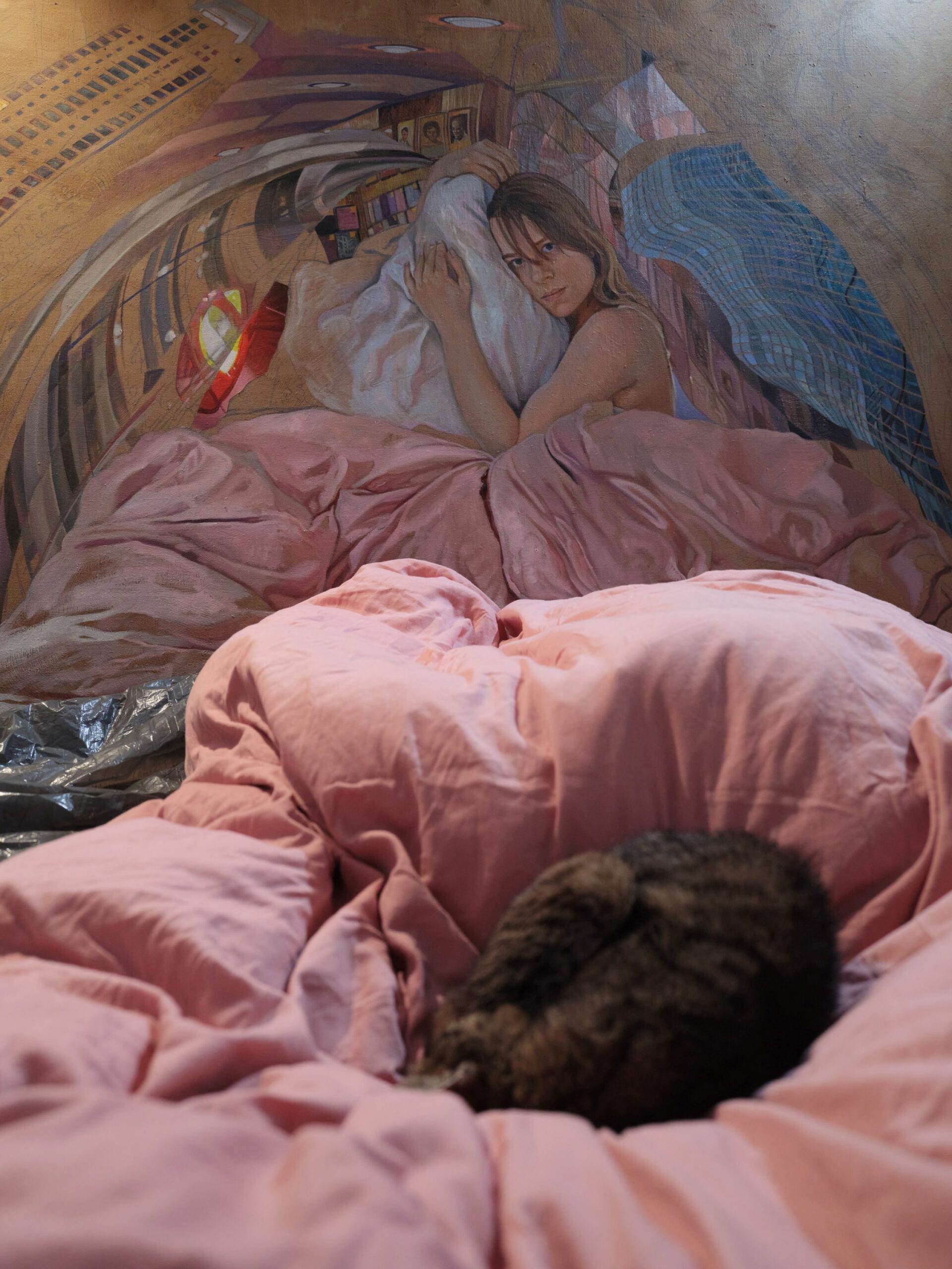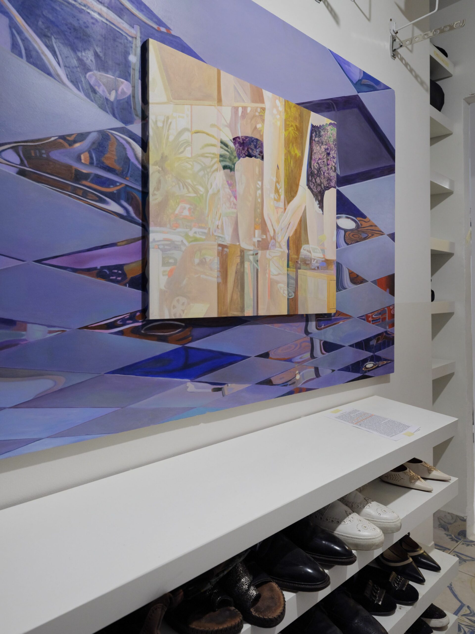 „Dziewczyna i miasto” to wystawa obrazów, która bada wizualny język miasta: jego odbicia i powierzchnie oraz napięcia między architekturą a pragnieniem, wychodząc od moich osobistych doświadczeń dorastania w Warszawie. Miasto stwarza iluzję wolności, jednocześnie modelując kobiece ambicje według własnych reguł – kultury sukcesu, konsumpcji i nowoczesności, które zapisane są w jego przestrzeni.